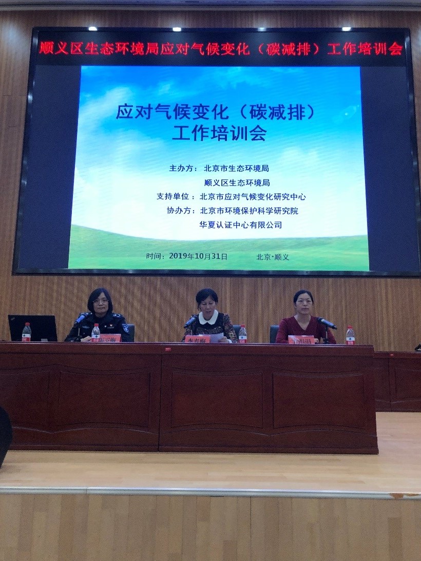 北京市生态环境局应对气候变化处和顺义区生态环境局的领导对2019年应对气候变化工作的开展和2020年工作的部署做了讲话。北京市应对气候变化研究中心、华夏认证中心有限公司和大西洋国际娱乐 的专家分别针对应对气候变化的背景和北京市碳减排、碳交易工作的整体流程和政策等做了汇报。