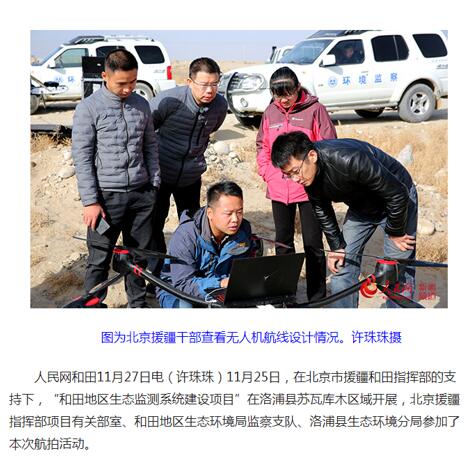 编者按:荆降龙,硕士研究生,高级工程师。自2007年起一直在北京市环境保护科学研究院从事污水处理方面的研究和设计工作。2017年2月16日,荆降龙作为北京市委组织部选派的第九批援疆干部,在和田地区环保局任总工程师职务。援疆期间,爱岗敬业,发挥主观能动性和技术特点,主动参与、承担地区环保局多项重要工作任务,为地区环保局的业务工作提供了有力的技术支撑。他承担的“和田地区生态监测系统建设项目”,作为援疆工作的重要组成部分,为和田地区生态环境监管提供了坚实的数据和技术支撑,有力地推动了新疆和田地区生态环境监管能力建设。人民网对该项目进行了报道,文章如下:
