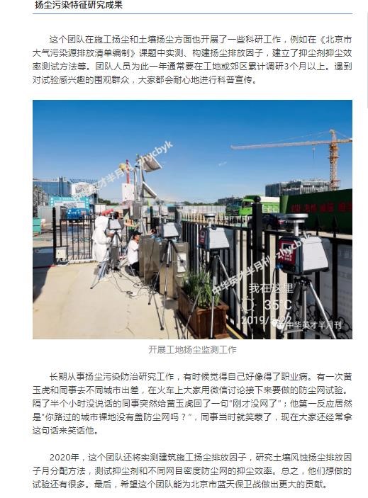 转自《中华英才》(第02期 总710期 2020.01.16)-北京市环境保护科学研究院扬尘污染防治研究团队——研发应用新技术 精细化防治扬尘