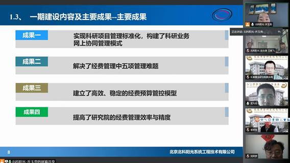 因受疫情影响,本次技术研讨采用视频会议线上交流的方式召开。会议由装备器材科刘笑梦、黄金研究院科技处主管孟凡钰主持,我院装备器材科、科研与国际合作办公室、财务科相关工作人员,以及院科研系统开发公司领导、相关技术人员参会。
