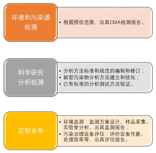 北京市环境保护科学研究院环境分析测试中心是一家分析测试技术研发与检测服务一体化的实验室,具有CMA计量认证资质,具备水和废水、空气和废气、土壤和固废、公共卫生等5大类213项检测能力,是环境保护主管部门认定的社会化环境检测机构。