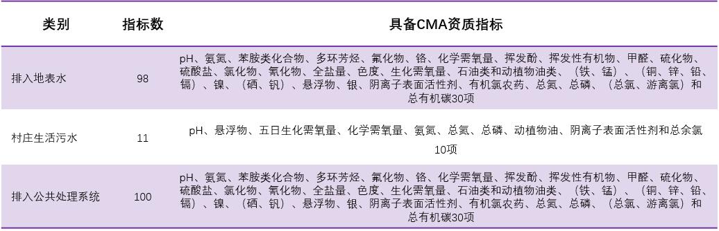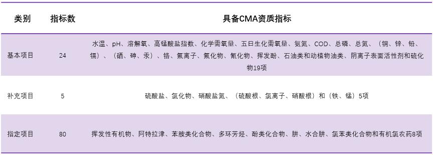 表1 地表水环境质量指标(GB 3838-2002)及具备的资质
