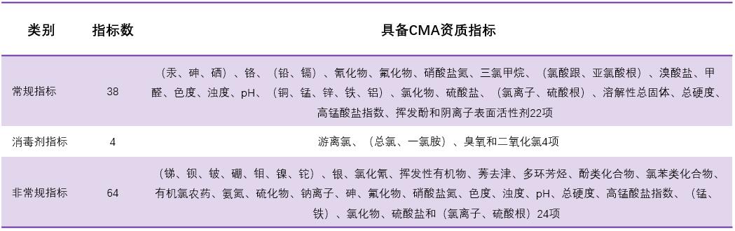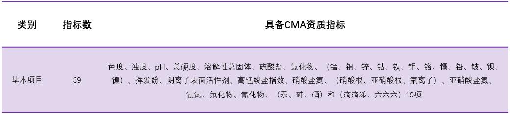 表3 生活饮用水卫生指标(GB 5749-2006)及具备的资质