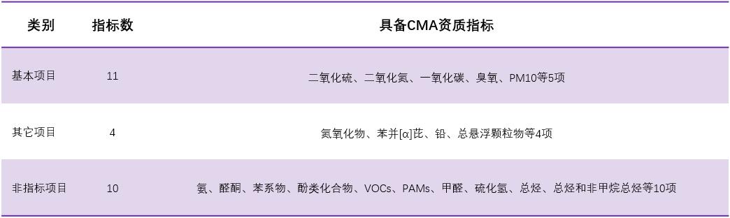 表1 环境空气质量(GB 3095-2012)指标及具备的资质