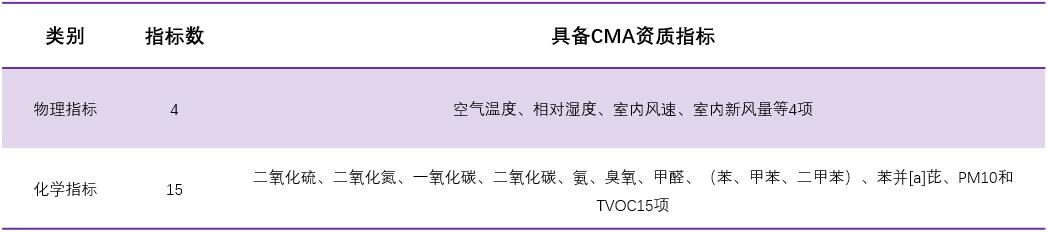 表2 室内空气质量(GB/T 18883-2002)指标及具备的资质