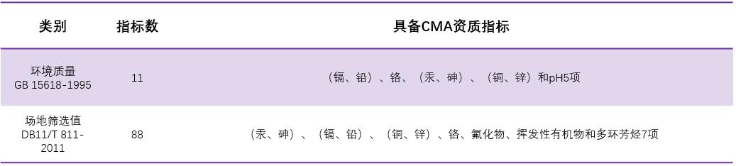 表1 土壤环境质量及场地筛选指标及具备的资质